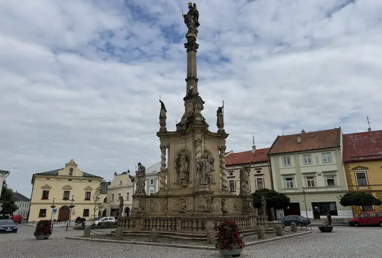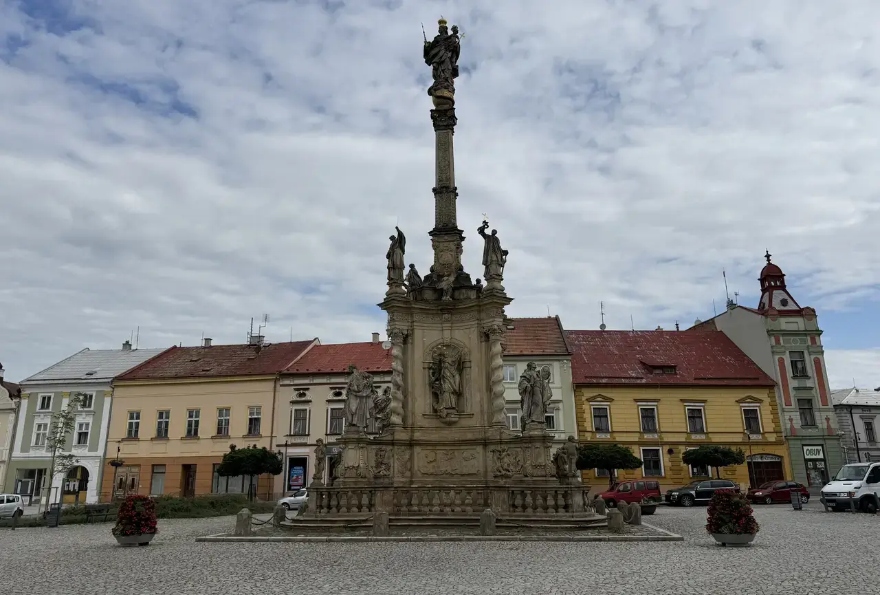 Uprostřed hlavního náměstí v Uničově se tyčí Mariánský sloup, významná barokní památka z roku 1720, postavená na poděkování za ochranu města před morovou epidemií. Dominantu tvoří socha Panny Marie Immaculaty, obklopená sochami světců – sv. Floriána, sv. Rocha, sv. Jana Nepomuckého a sv. Šebestiána.