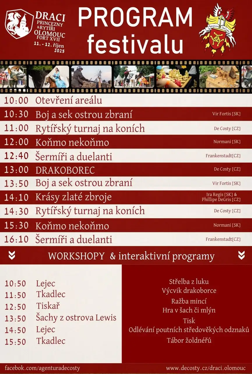 Již 11. až 12. října 2025 se veřejnost může vydat na unikátní zážitek – Festival na Fortu XVII v Olomouci, který slibuje spoustu magie, rytířských klání, velkolepých draků a rodinné atmosféry. Pořádá ho Agentura De Costy.
