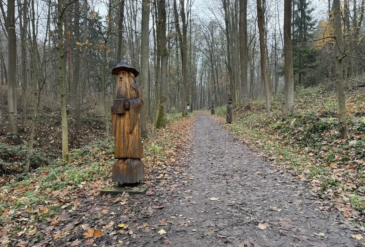 Mezi stromy narazíte na dřevěné postavičky, skřítky a pohádkové kouty, které působí mile a nenuceně. Les si tu pořád zachovává svůj klid, jen je obohacený o jemnou dávku fantazie.