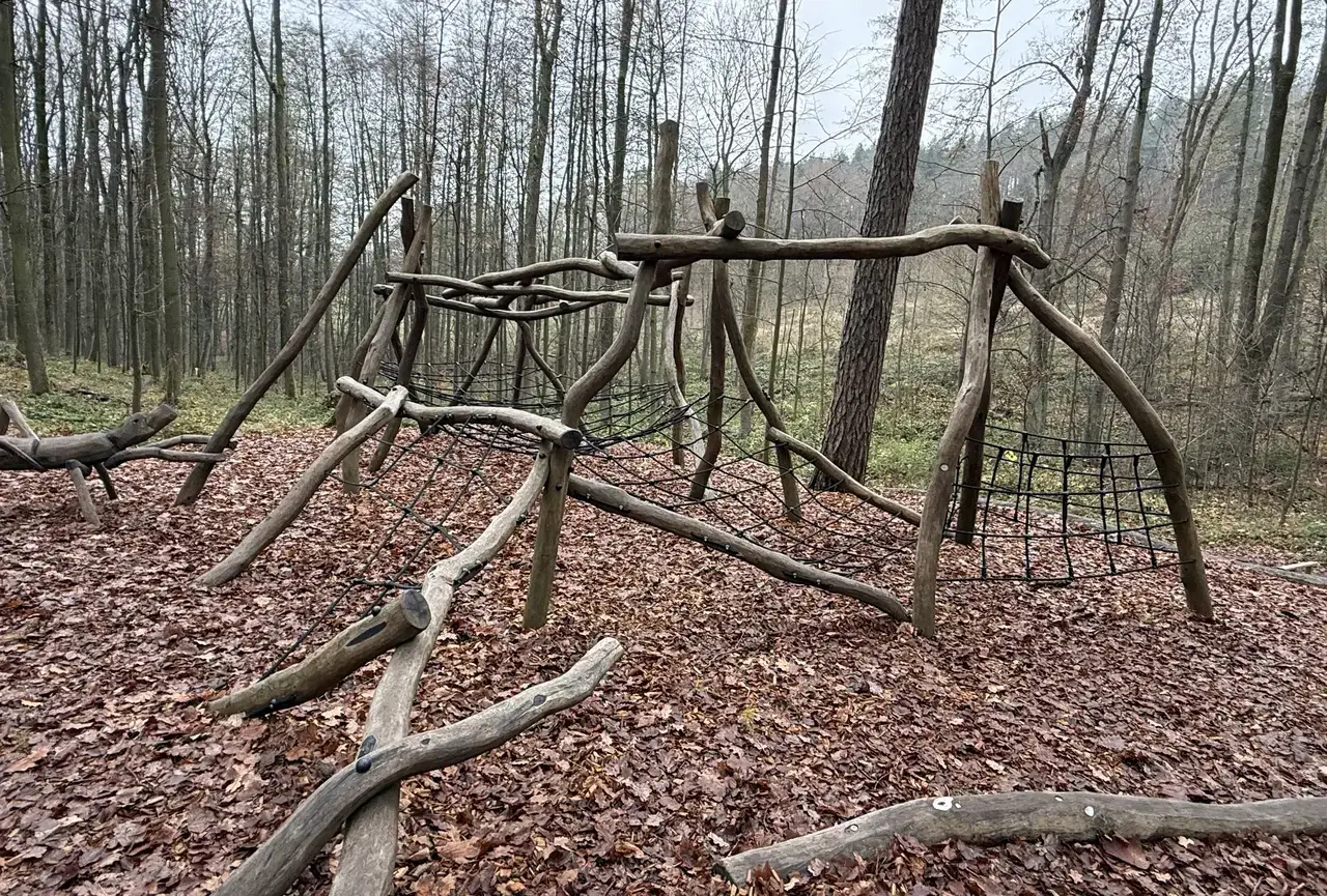 Na samotném konci stezky čeká příjemné překvapení v podobě dřevěno-lanového hřiště. Děti se tu mohou vyřádit na prolézačkách a lanových prvcích, zatímco dospělí si na chvíli odpočinou. Hřiště hezky zapadá do okolního lesa a je tak pomyslnou tečkou za celým pohádkovým výletem.