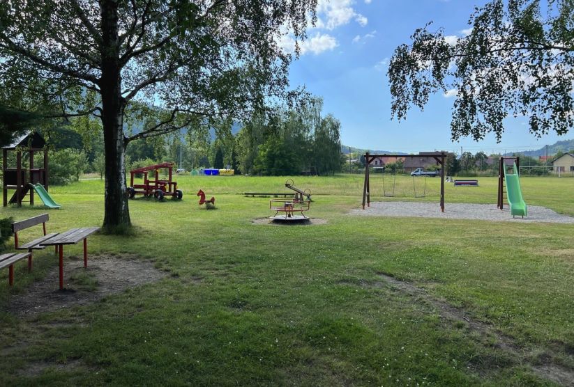 Na dětském hřišti se nachází kolotoč, houpačky, domeček se skluzavkou, dřevěné auto a pískoviště. K dispozici jsou také lavičky se stolem. Dětské hřiště sousedí s hřištěm fotbalovým a také tenisovým kurtem.